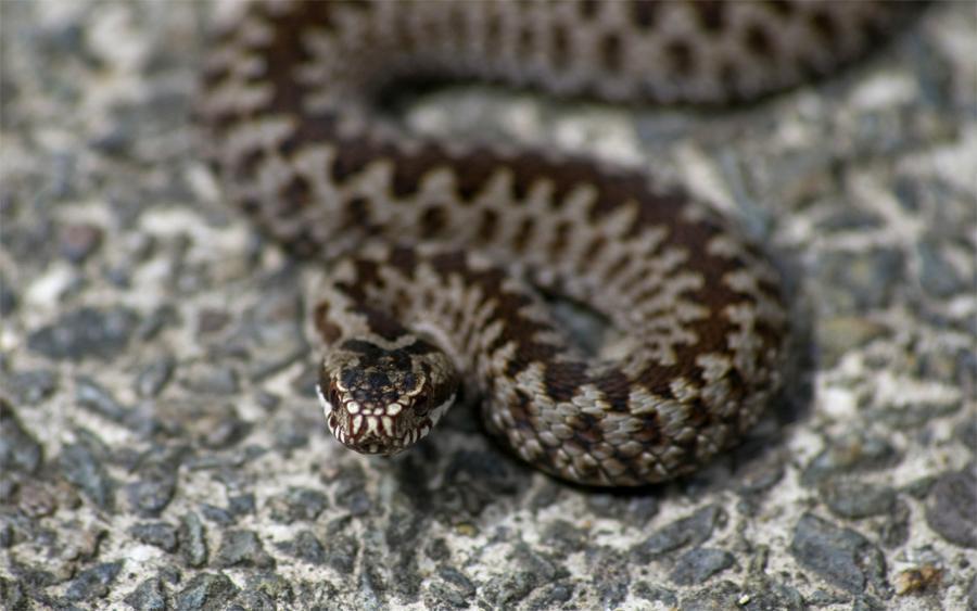 As víboras são um tipo de réptil (cobra) que se distinguem dos outros pelo fato de serem mais pequenas (com uns 50 cm, nunca chegam a um metro de comprimento), têm a cabeça larga e achatada, em forma de "V", têm um desenho em forma de zigue-zague no dorso, as suas presas são móveis e estão situadas na frente da boca e têm uma cauda curta em forma de cone. É um réptil comum em muitos países e algumas das espécies de víbora são venenosas. Os sinais de uma mordida de víbora costumam ser dois pequenos pontos espaçados por 6 e 10 milímetros entre si e em alguns casos produzem um inchaço na zona afetada. Se quer saber como deve atuar caso encontre este animal e seja atacado por ele, consulte este artigo de umComo.com.br sobre como atuar perante a mordedura de víbora.