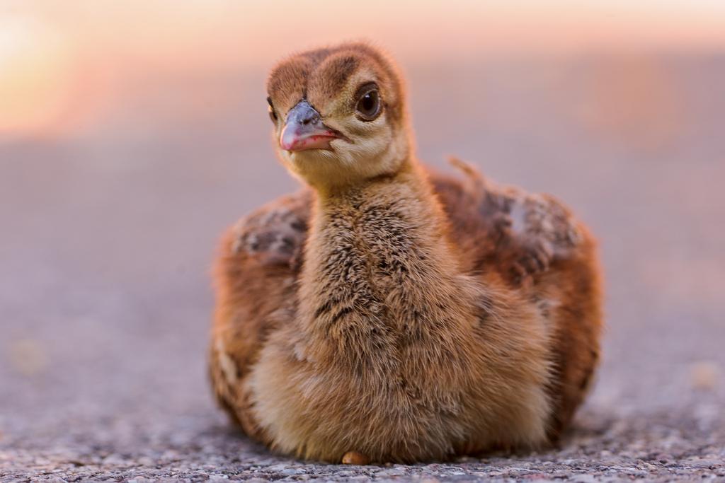 Nas primeiras 48 de vida, os pequenos pavões não devem ser alimentados pois já possuem uma reserva de alimento quando nascem.