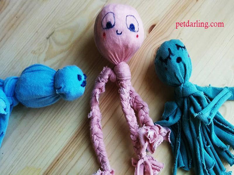 Pegue num par de meias velhas, cruze as duas e dê um nó. Depois terá que recortar algumas tiras do tecido que ficou livre nas pontas ou inclusive fazer alguma trança com as tiras para que o brinquedo fique mais legal. Já está pronto um brinquedo excepcional para o seu felino!