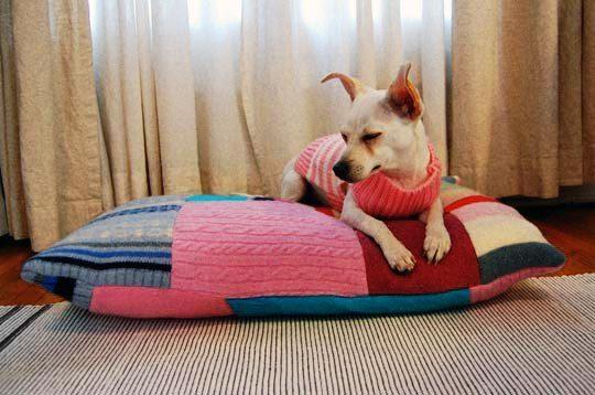 Outra forma de você fazer uma caminha para o seu cachorro é juntando retalhos de tecidos e costurá-los um aos outros. Depois é só uni-los fazendo uma forma de almofada quadrada ou retangular, dependendo do tamanho do seu cachorro. Encha com retalhos de tecido, manta acrílica ou outro tipo de enchimento que tiver em casa para deixar a cama do seu pet bem fofinha e já está!