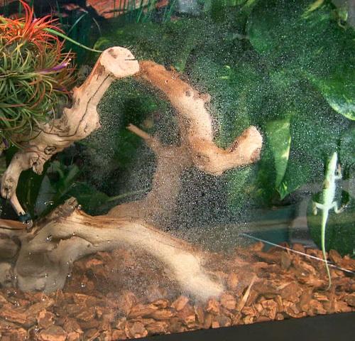 No interior do terrário coloque uma camada profunda de areia ou gravilha se sua espécie de lagarto for de habitats desérticos, pois elas gostam de escavar; coloque casca de árvore ou turfa com 5 a 10 cm de profundidade se a espécie for oriunda de florestas, pois esse substrato ajudará a manter a umidade.