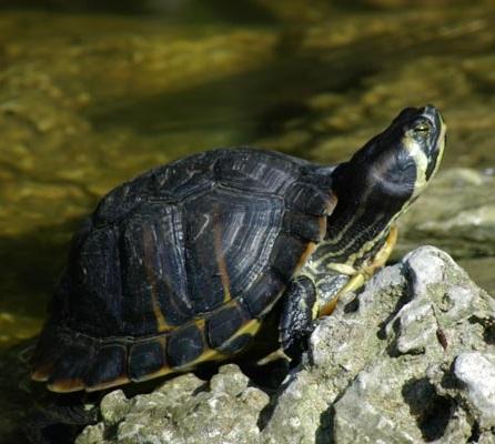 Já as tartarugas da espécie Pseudemys (na imagem), se forem fêmeas terão 35 cm de carapaça na idade adulta, e 25 cm se forem machos. Aos 7 anos as fêmeas terão cerca de 13 cm de carapaça.