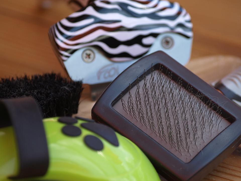- Rasqueadeira: serve para retirar pelos mortos e é indicada para cachorros de pelo comprido, áspero, liso, crespo e duro.
