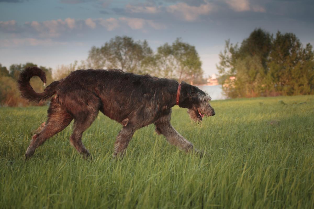 O lebrel irlandês é outro dos cães gigantes do planeta, podendo atingir 86 cm de altura e até 54 kg. Seu corpo é alongado e esbelto, com uma pelagem de pelo duro e longo, do tipo arame.