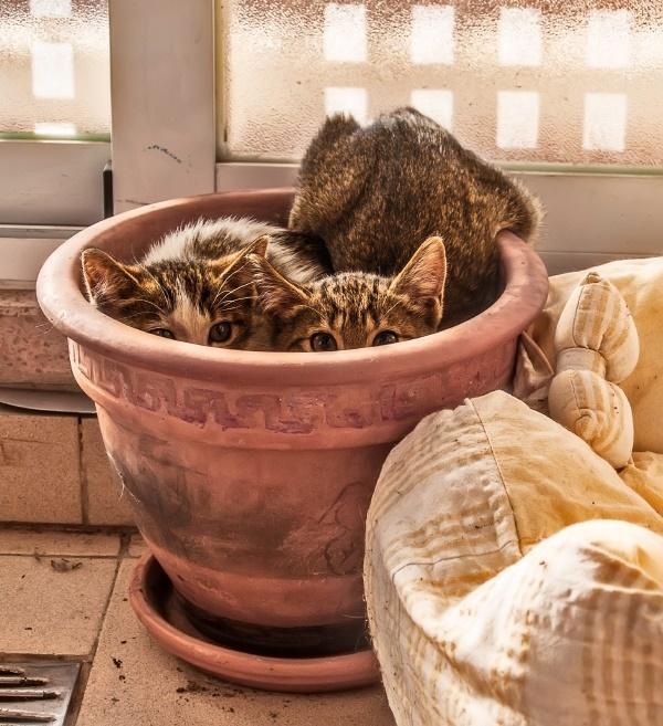 - Por trás de alguma árvore, arbusto ou vaso grande, mas também podem se esconder dentro do próprio vaso vazio.