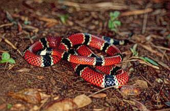Coral verdadeira (Micrurus corallinus) - facilmente reconhecida por suas cores vivas. Devido ao caráter tóxico de sua picada, é tida como uma das cobras mais venenosas do país. Pode ser encontrada nas regiões sul e sudeste do Brasil.