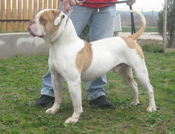 O Bulldog Americano é impressionante, pesa entre 27 e 58 quilos, aproximadamente, pode ser branco, cor de canela, vermelho ou marrom. É musculoso, forte e ágil, uma raça perfeita para pegar vacas, para a proteção e como companhia familiar.