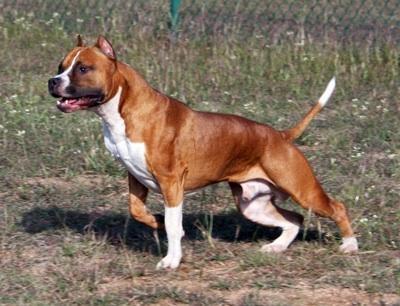 Uma raça muito peculiar de Pit Bull é o American Staffordshire terrier, que é uma mistura de raças como o bull terrier, o terrier inglês, o mastim, o bulldog, o Staffordshire bull terrier, entre outras. Pesa entre 18 e 23 quilos e pode ser vermelho, branco, preto, azul e inclusive tigrado. É um cão muito inteligente, leal e forte, mas não costuma se dar bem com outros animais.