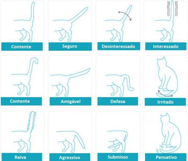 Já dissemos no início deste artigo que na postura de um gato intervêm diferentes fatores que podem demonstrar como o felino se encontra. Quando ele caminhar com o rabo levantado, com o corpo erguido e com movimentos decididos, é porque o animal está tranquilo e seguro; simplesmente está explorando o local, quer chamar sua atenção ou está passeando pela casa. O rabo levantado é um sinal de que o gato está amigável e receptivo às suas atenções e carinhos.